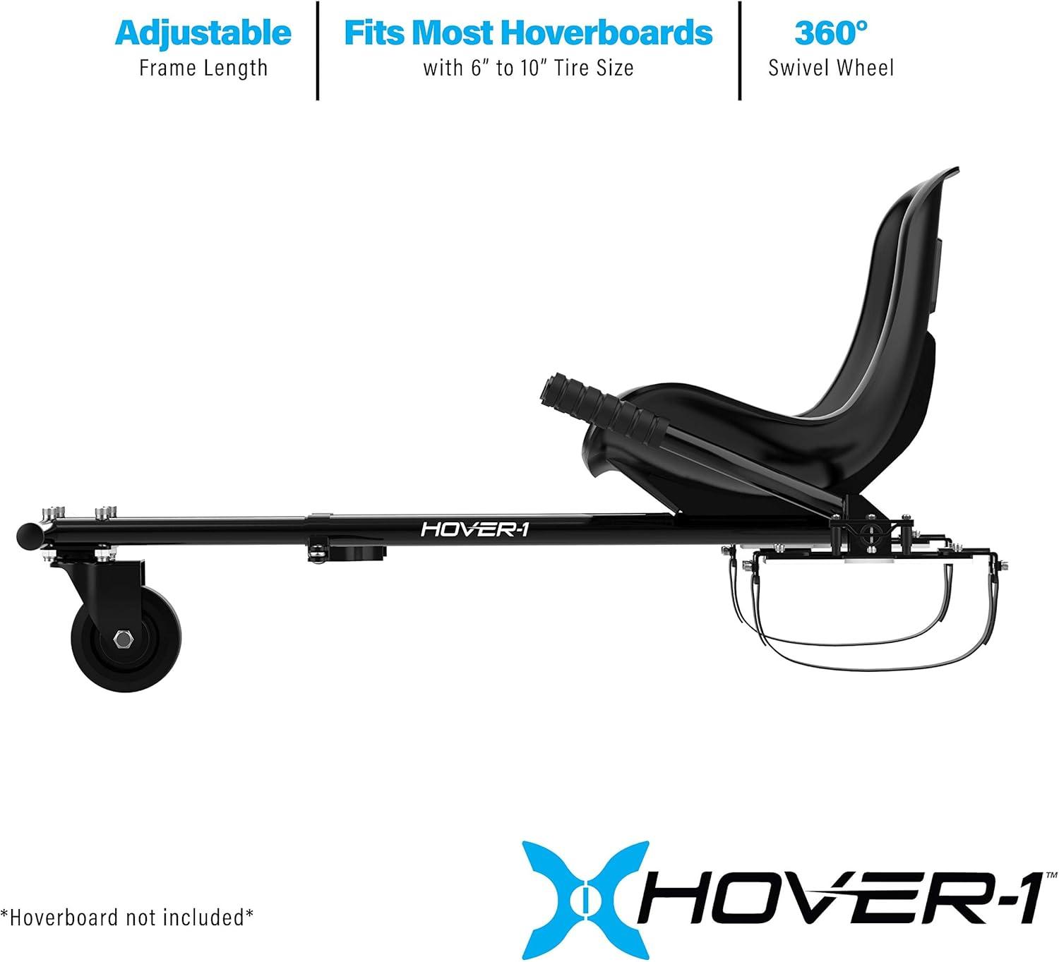 Transform your hoverboard into an electric go-kart with the Hover-1 Kart Buggy Attachment, compatible with most self-balancing electric hoverboards of 6.5″ and 8″ wheels. This attachment provides complete stability and control, perfect for kids, teens, and young adults. It features a comfortable bucket seat, dual hand-operated joysticks, and an independent rear wheel control for easy turns and reverse driving. The adjustable frame length and straps ensure a safe and comfortable riding experience.