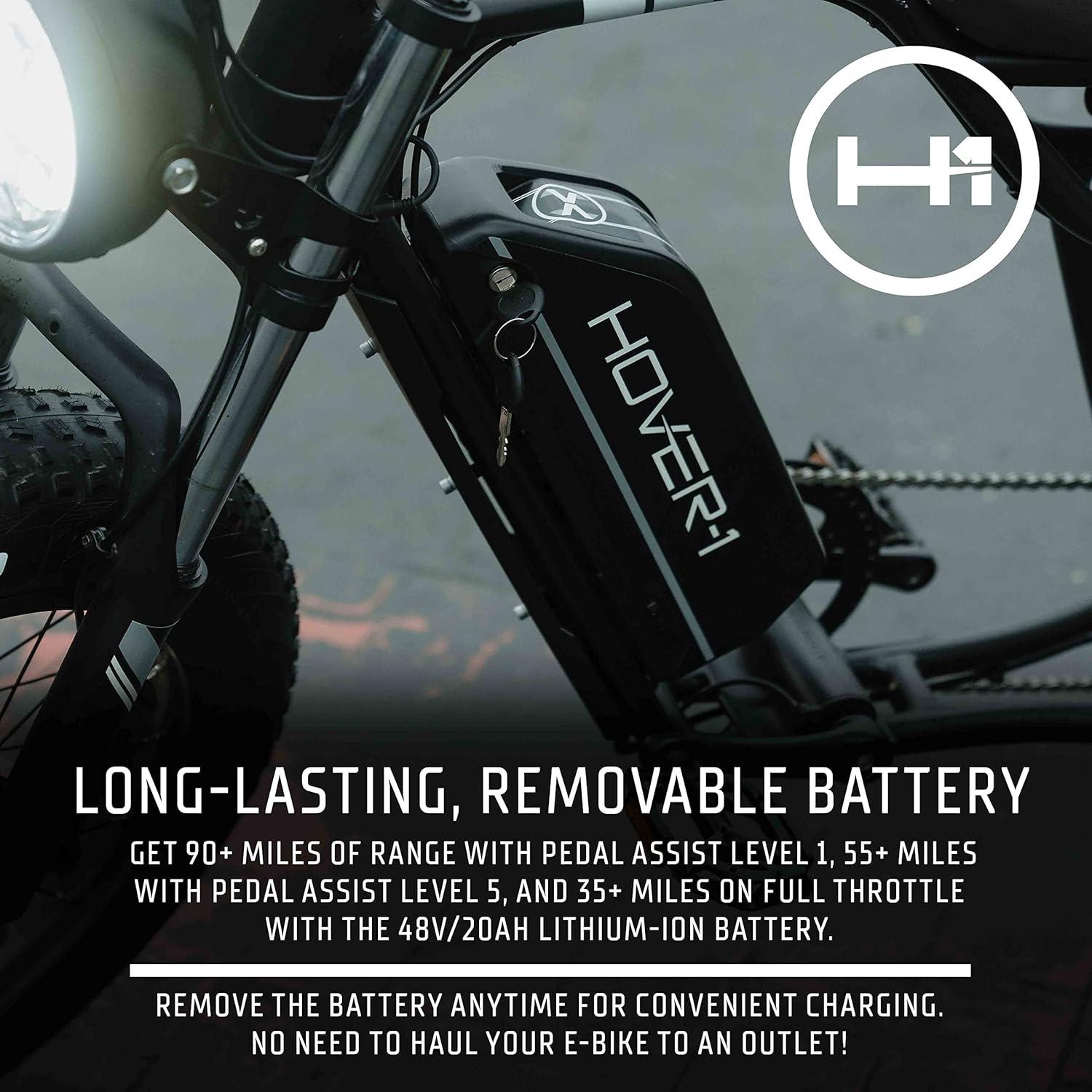 LONG-LASTING REMOVABLE BATTERY – The built-in 48V/20Ah lithium-ion battery fully charges in 7-8 hours and provides an average range of 60 miles. The battery can be removed for convenient charging. No need to haul your electric motor bike to an outlet!