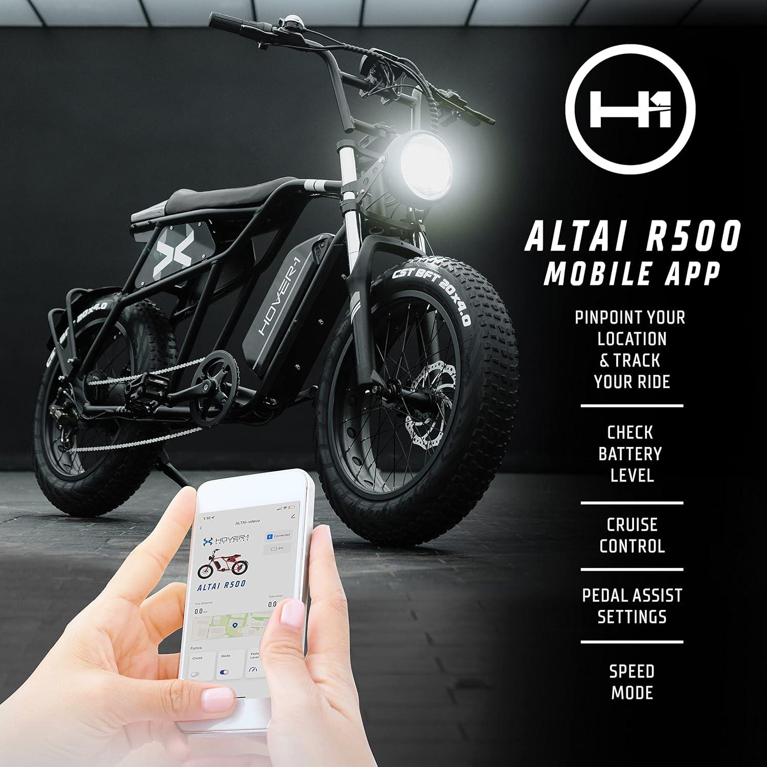 APP ENABLED – Track your riding distance and time, navigate with GPS, and adjust your settings for our Altai 750 e bike for adults with the Hover-1 E-Mobility App.