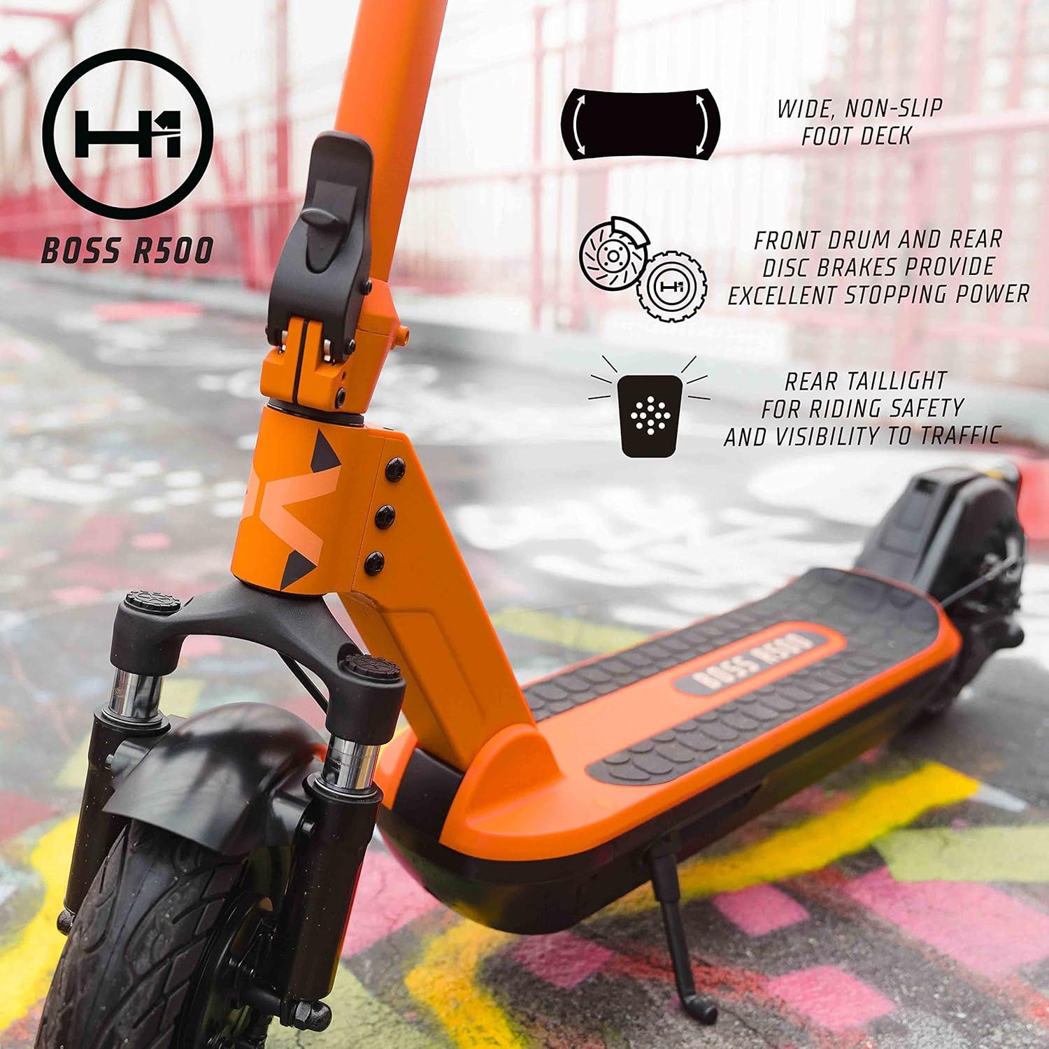 EXCELLENT PERFORMANCE & RIDE QUALITY – With 500W of power, Boss powerful electric scooter reaches a max speed of 20 mph & scales inclines up to 15 degrees. Dual front shocks and rear spring suspension provide an extra smooth riding experience.
